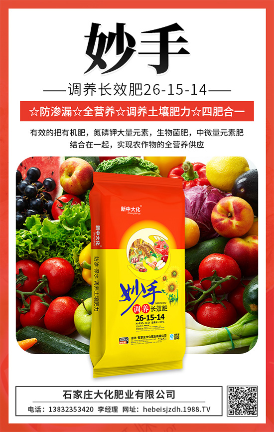 妙手調(diào)養(yǎng)長效肥,多種作物都能用,比同樣含量摻混肥控釋肥價格低,有賣點,利潤高,農(nóng)民說好,經(jīng)銷商賺錢多的好產(chǎn)品,值得你關注。
