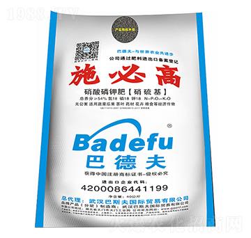 當(dāng)前位置:首頁 >> 武漢巴斯夫國際貿(mào)易有限公司 >> 硝硫基全水溶肥料20-20-20-施比高-巴斯夫