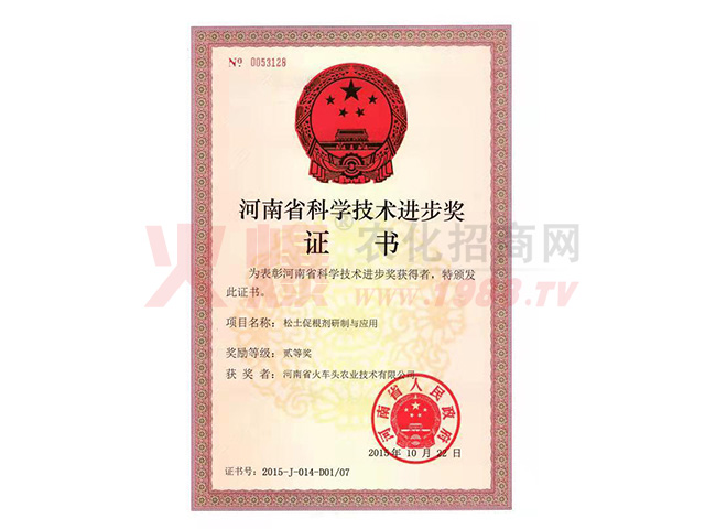 2015年松土促根劑項(xiàng)目經(jīng)河南省科技廳組織專家組進(jìn)行鑒定,達(dá)到國際先進(jìn)水平,國內(nèi)外沒有同類報道,被科技日報譽(yù)為“修復(fù)土壤的保護(hù)神”;
