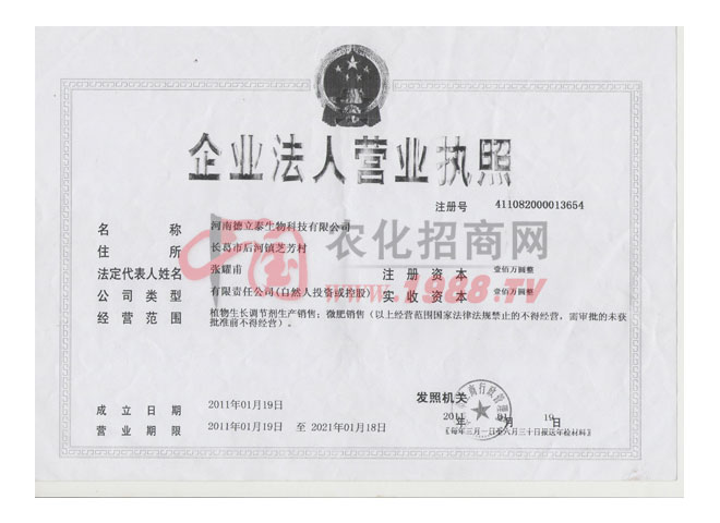 河南德立泰生物科技有限公司成立于2010年,生產(chǎn)基地占地面積68畝,總投資1000萬元。前身為德立泰生物制藥廠,是農(nóng)業(yè)部、河南發(fā)改委定點的農(nóng)藥生產(chǎn)企業(yè),全國專業(yè)的控旺、座果、膨果調(diào)節(jié)劑,河南省早專業(yè)的藥性調(diào)理劑研發(fā)生產(chǎn)基地。公司依托中國農(nóng)業(yè)大學(xué)、河南農(nóng)業(yè)大學(xué)、南京土壤研究所等單位強大的科技研發(fā)力量做后盾,背靠河南農(nóng)業(yè)大學(xué)雄厚的師資力量,成熟的科研基地,杰出的復(fù)合型人才。同時與國內(nèi)眾多農(nóng)業(yè)院校和科研機構(gòu)建立了多方位、深體系的技術(shù)合作關(guān)系。