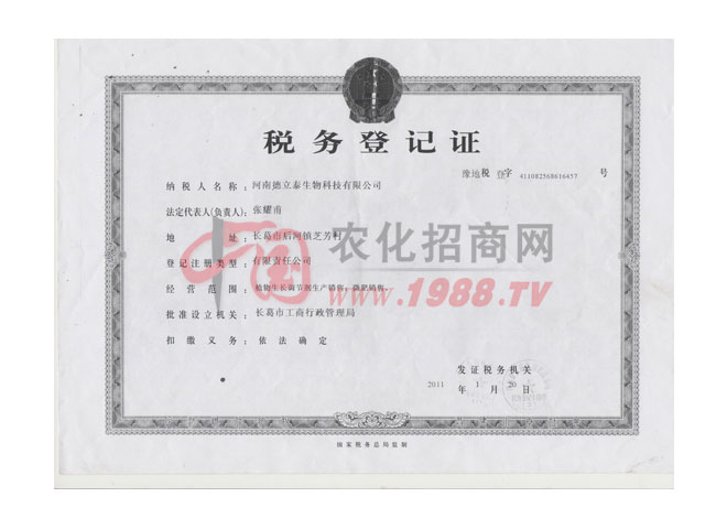 證書名稱:稅務(wù)登記證 發(fā)證機構(gòu):長葛市工商行政管理局
