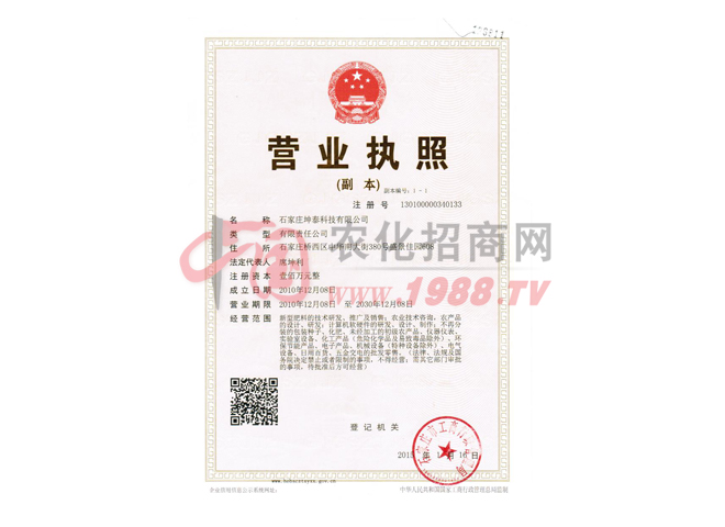 河北石家莊坤泰科技有限公司是集科技研發(fā)、生產(chǎn)、銷售為一體的現(xiàn)代化企業(yè),專門從事新型農(nóng)藥的研發(fā)、生產(chǎn)和銷售的高新技術(shù)企業(yè)。公司依托于農(nóng)業(yè)大學(xué)及國外多名農(nóng)學(xué)專家,擁...