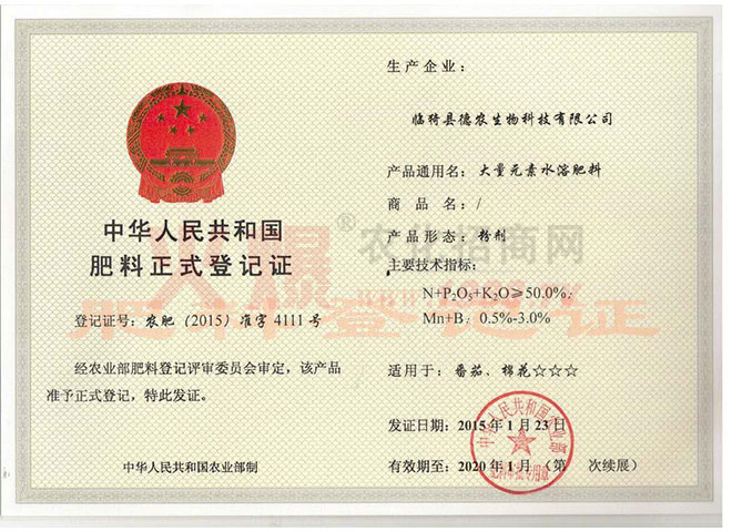 山西臨猗德農(nóng)生物科技有限公司是國(guó)家水溶肥定點(diǎn)生產(chǎn)企業(yè)、國(guó)家高新技術(shù)培育企業(yè)“誠(chéng)于內(nèi),信于外”,公司秉持“德為做人之根,農(nóng)為生養(yǎng)之父”的理念,做為一家新生的、富有創(chuàng)造力的現(xiàn)代農(nóng)化生產(chǎn)企業(yè),公司聚集了一批潮氣蓬勃、敢為天下的年輕營(yíng)銷(xiāo)團(tuán)隊(duì),德農(nóng)人誠(chéng)盼各界有識(shí)之士加盟,攜手奮進(jìn),為減少農(nóng)藥使用、保護(hù)環(huán)境、為農(nóng)業(yè)增產(chǎn)、農(nóng)民增收貢獻(xiàn)力量,共同開(kāi)創(chuàng)燦爛輝煌的明天。